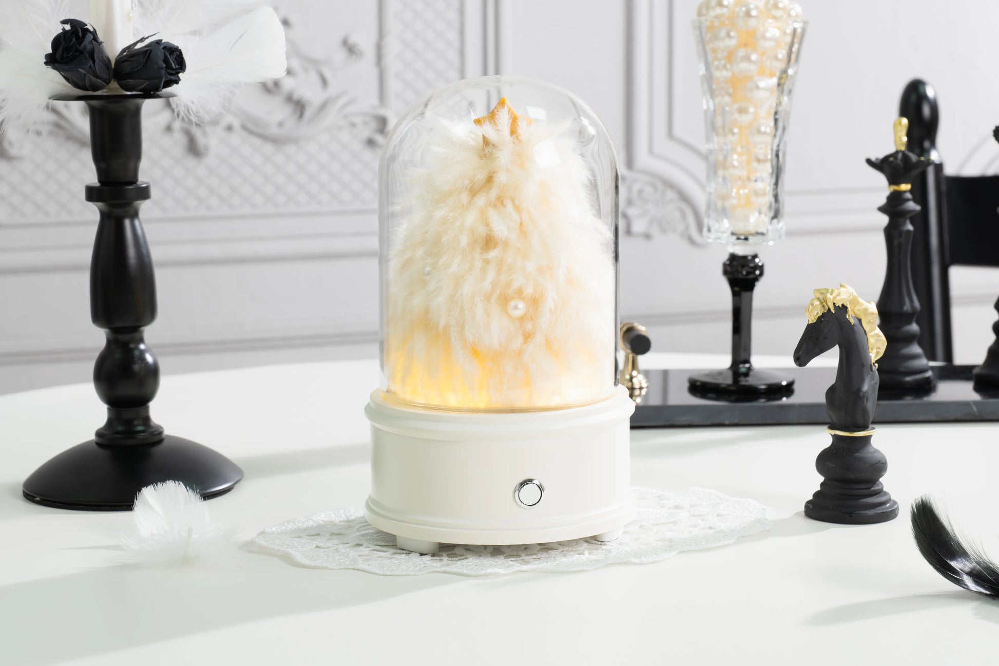 - Museum-Grade Artistry: Each sphere is a curated art piece. The delicate Pampas Grass and feathers are hand-set under a crystal-clear glass dome, resting on a minimalist base with intuitive touch controls.